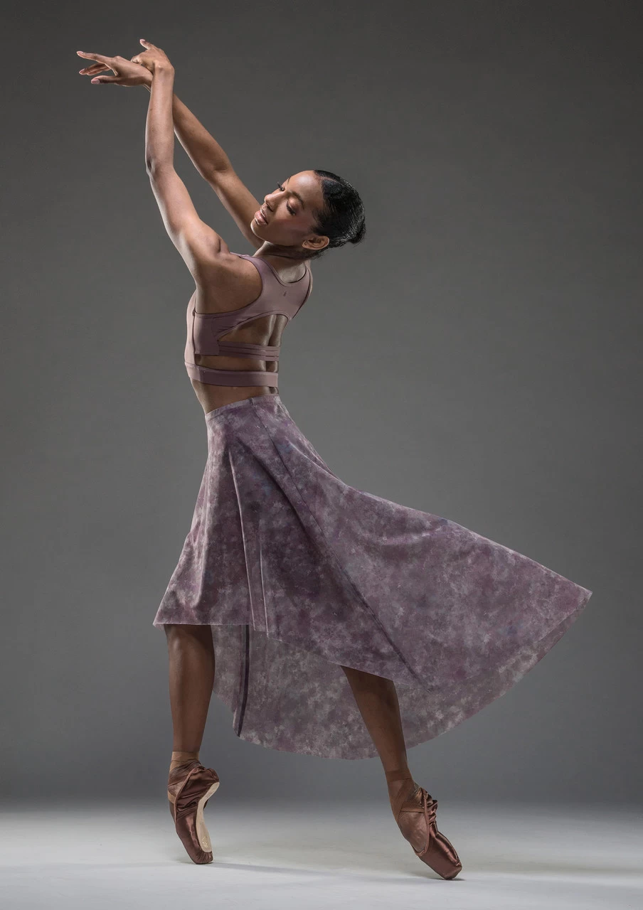 An elegant skirt to compliment your movement, the Yeraz skirt features a mini length at the front to show your legs as you dance. This contrasts with a long length at the back of the skirt which flows along with your movement as you dance. Designed in elegant soft mesh to be worn with matching leotards. We’d style this with Move Dance Kalpana Cap Sleeve Leotard and pointe shoes for class. Part of the Precious Adams Collection.