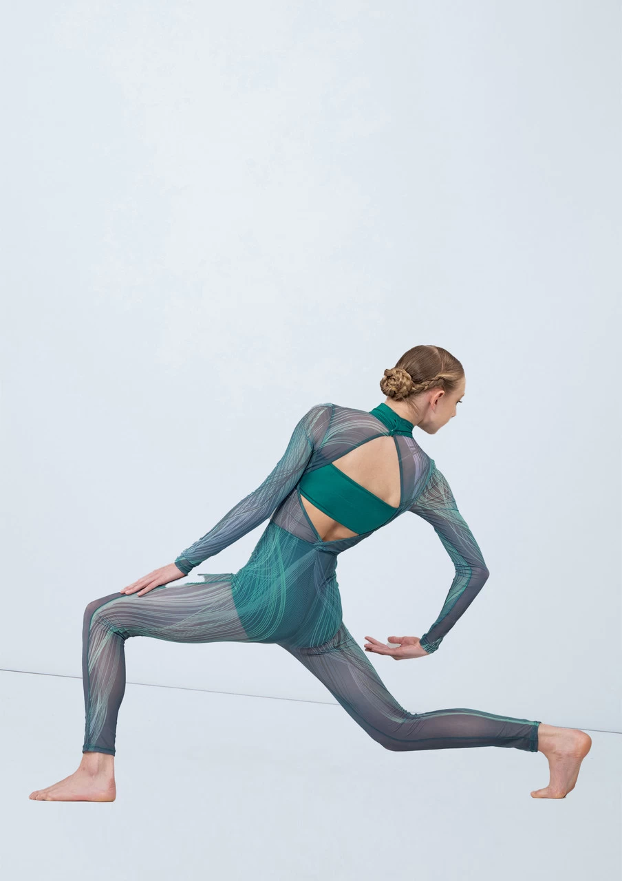 Wave printed power mesh unitard