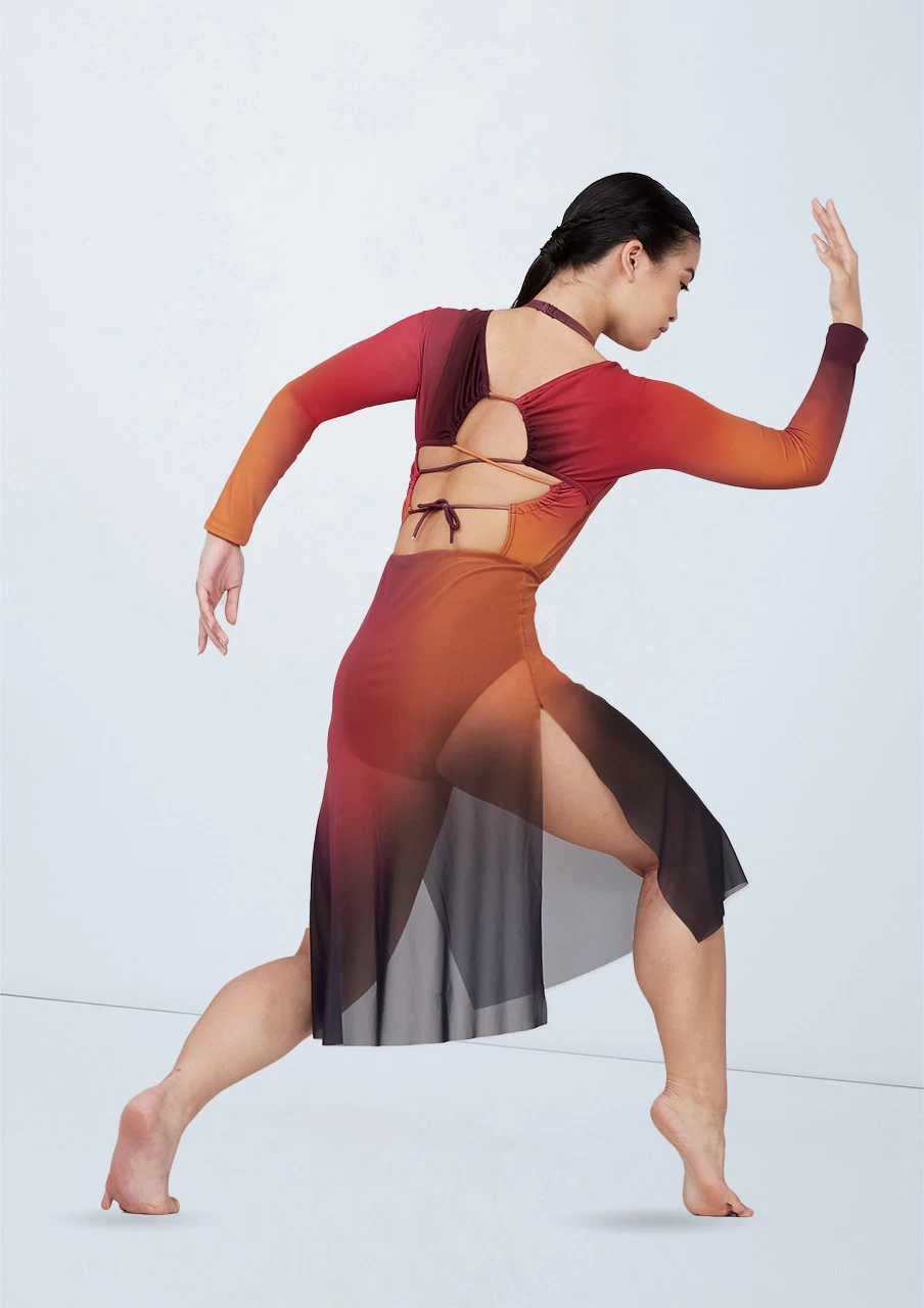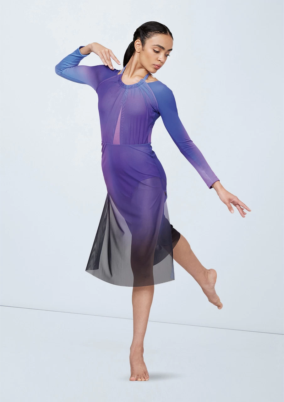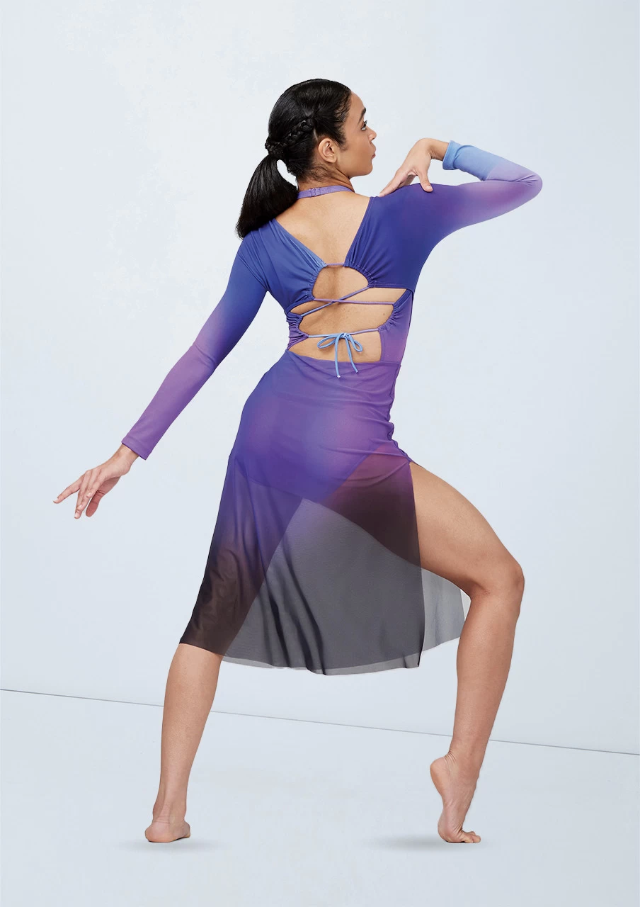 Ombré dress features matte jersey sleeves and back